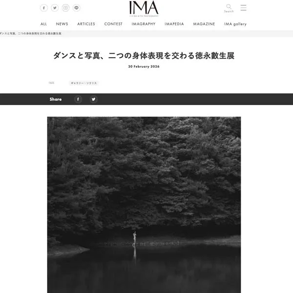 27 2月, 2026 in メディア掲載 【メディア掲載】IMA ONLINEにて、徳永數生写真展「Pond – Dodo – ひとりのコンテンポラリーダンサーとのコラージュ – 」をご紹介いただきました
